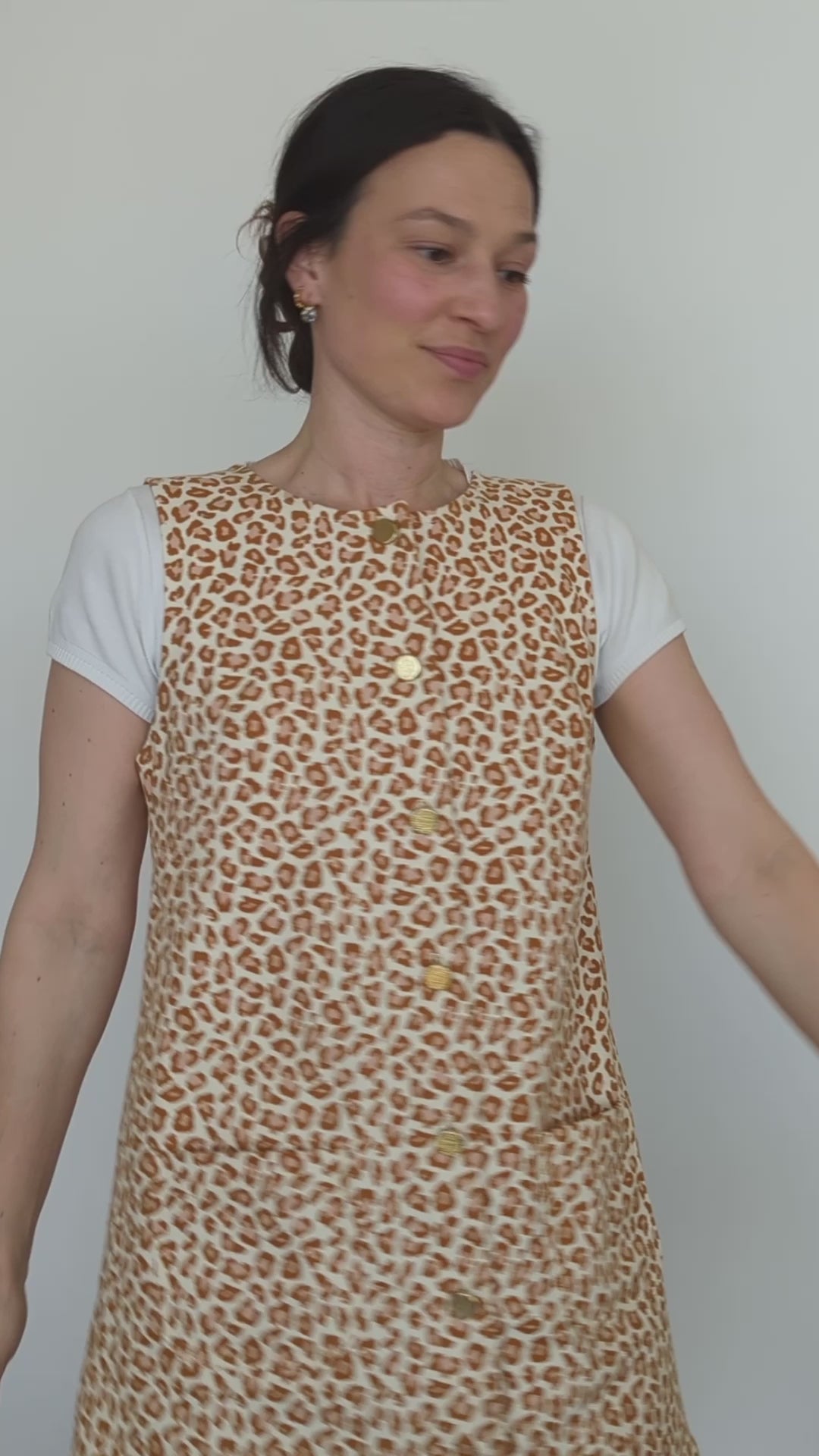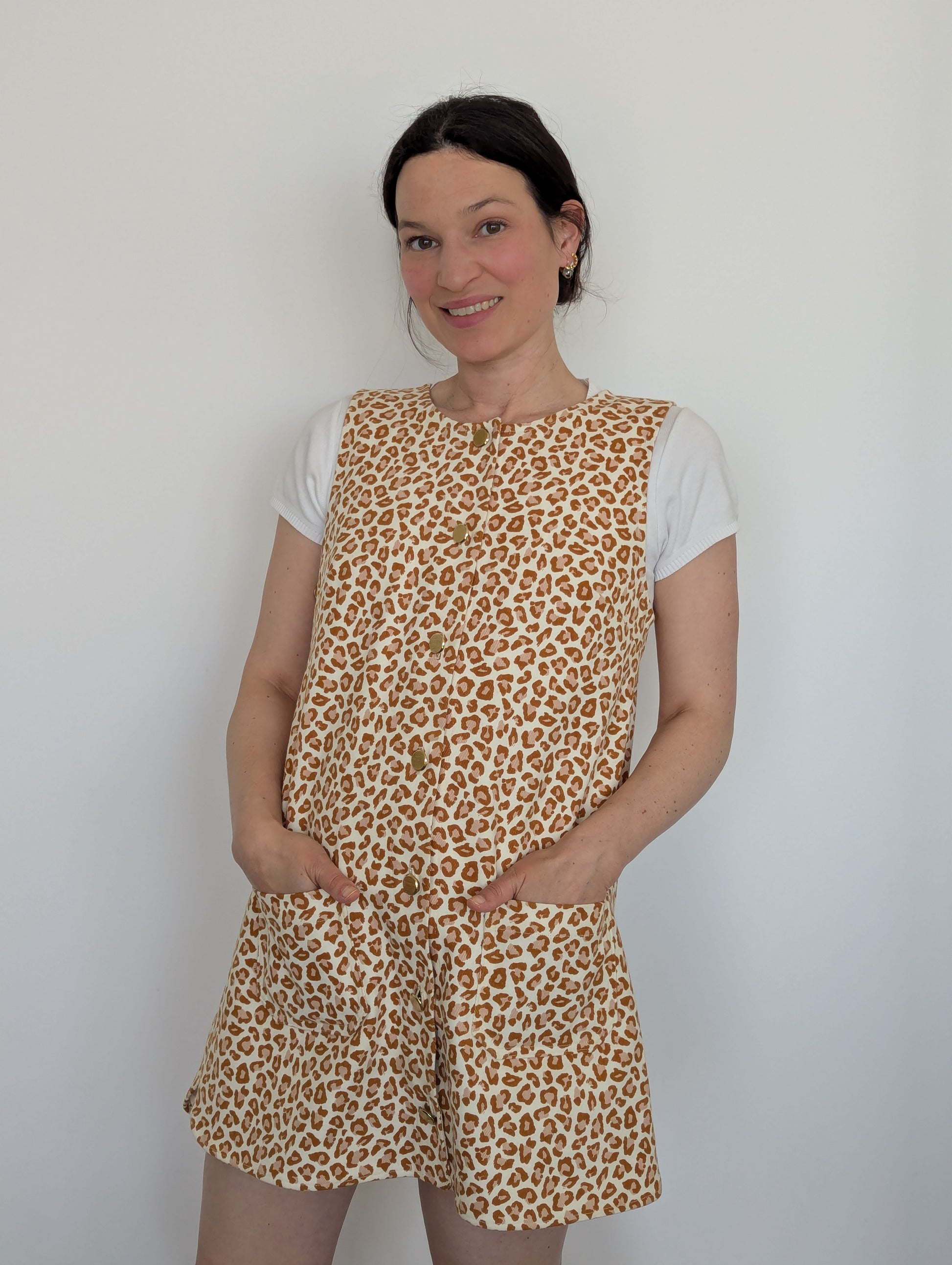 I am wearing an Brixton Dress made in a Leopard Gabardine fabric from Atelier Brunette.